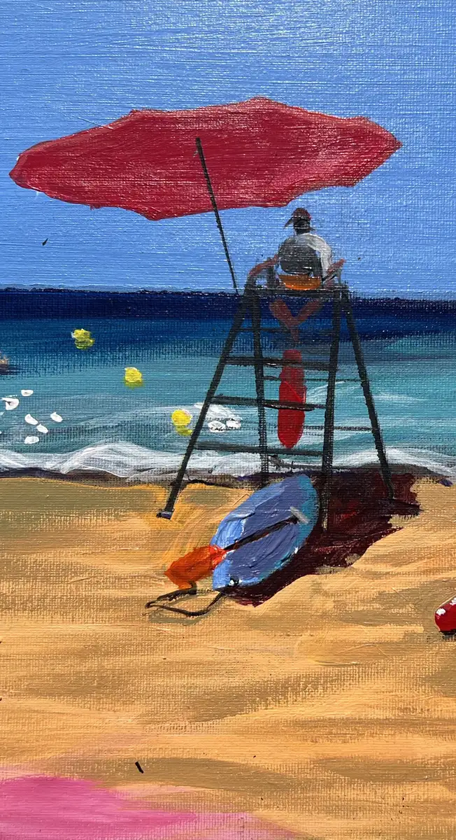 Stinking hot day, a beautiful turquoise sea and golden sand. made for a delicious colour palette. Acrylic on canvas panel 40 x 30 cm