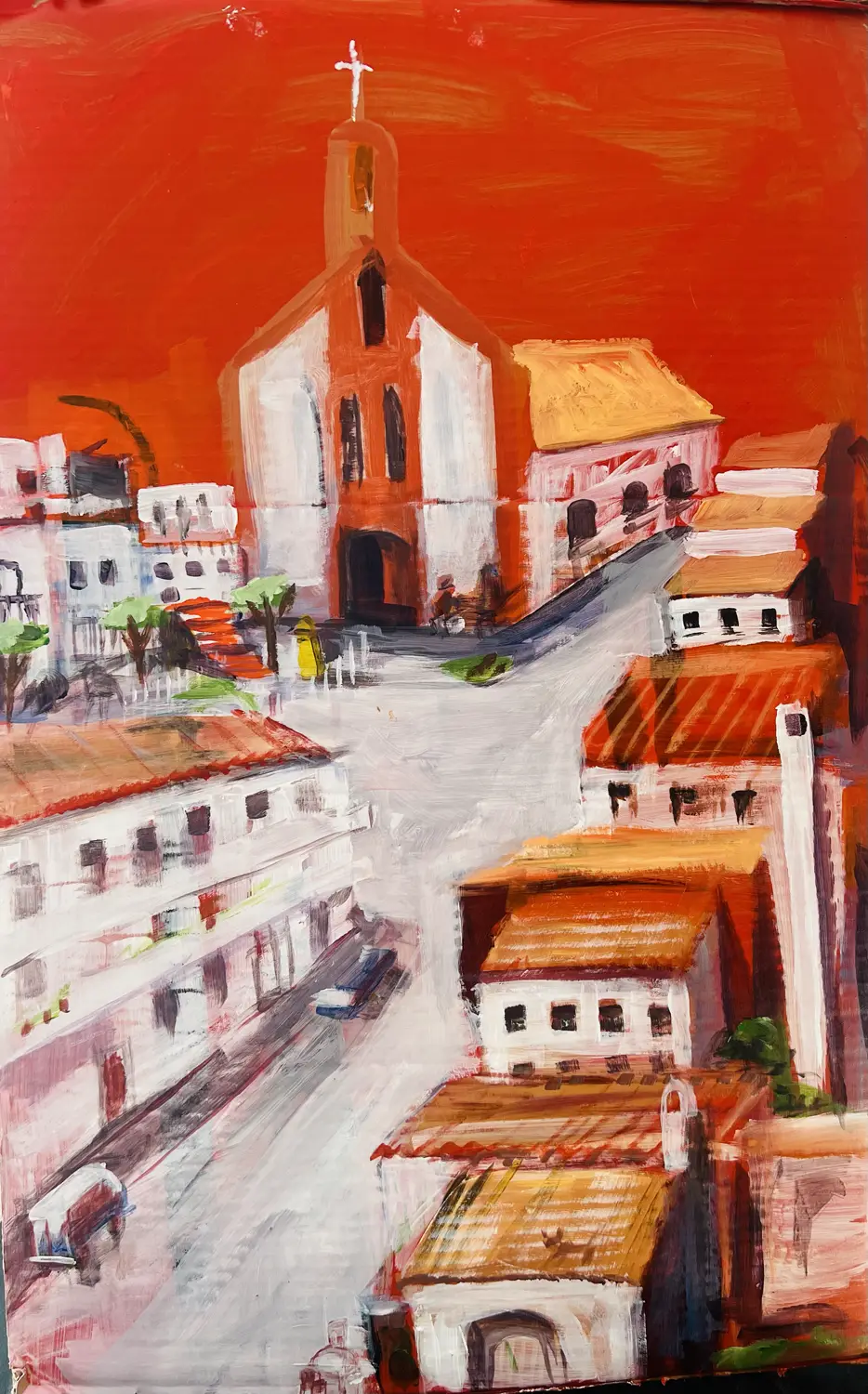 At the entrance to the Beach. Acrylic on canvas panel 40 x 30cm