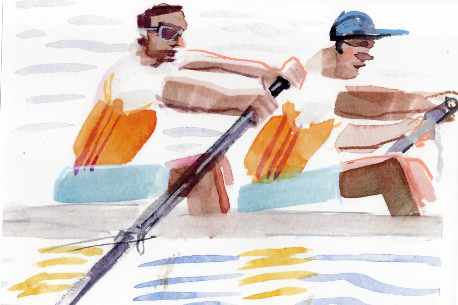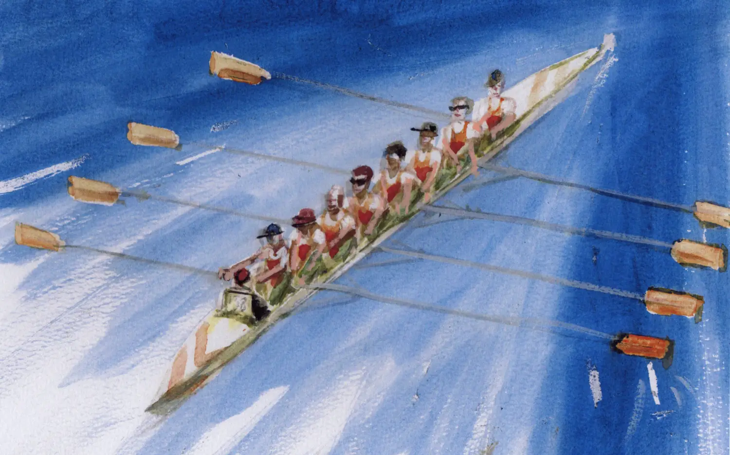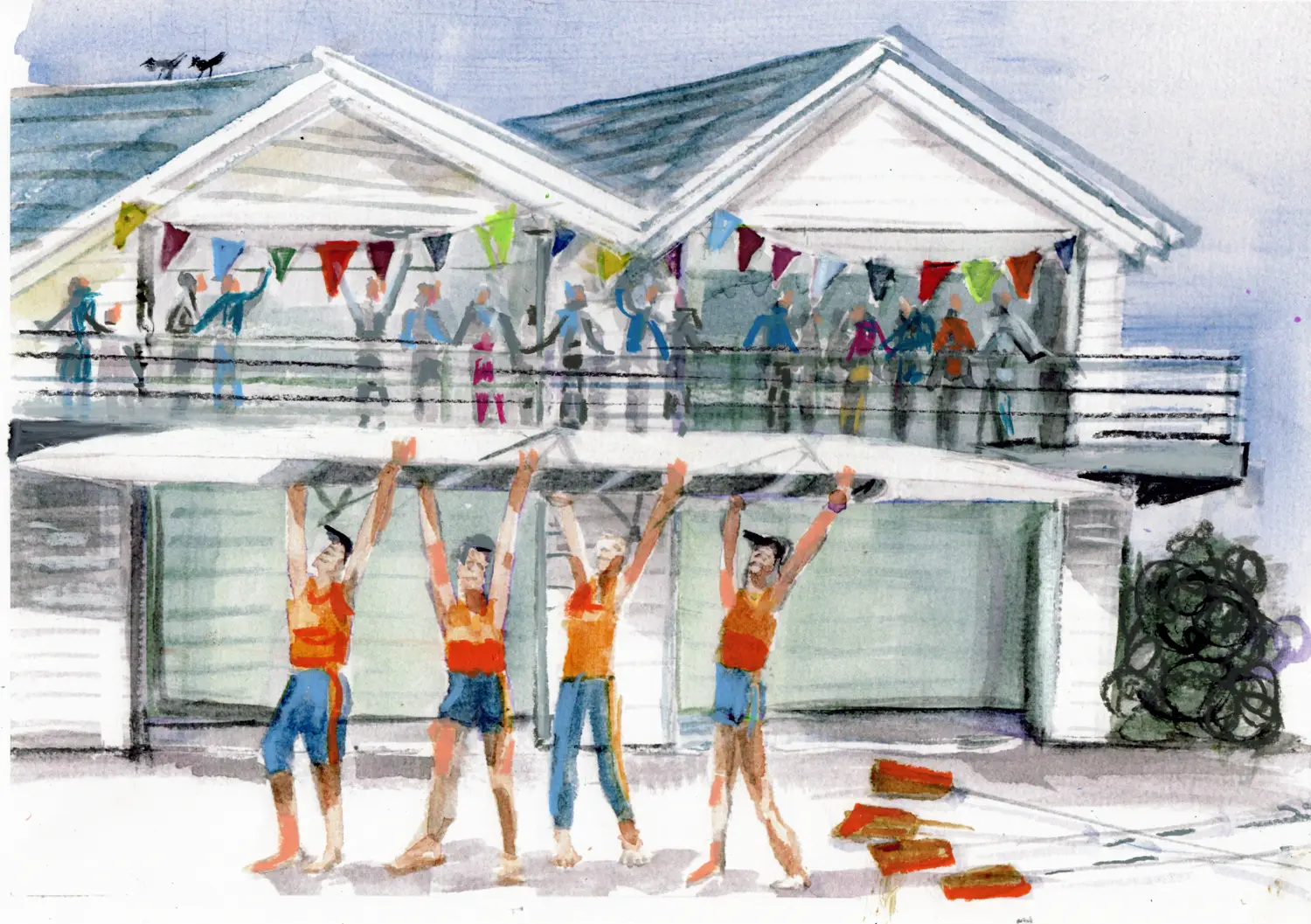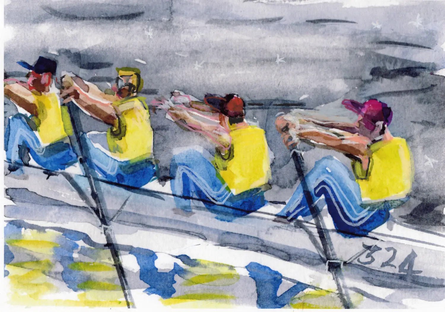 I rowed for the Lea from 1997 to 2000 and never won a race. So we were the worst team but had the greatest enthusiasm. I am always intrigued by the dedication to the sport, the hours of training, cleaning boats and chatting in the Riverside Cafe. I love to capture the energy and emotion with raw vibrant colour, working with Acrylic, charcoal and conte pencils.