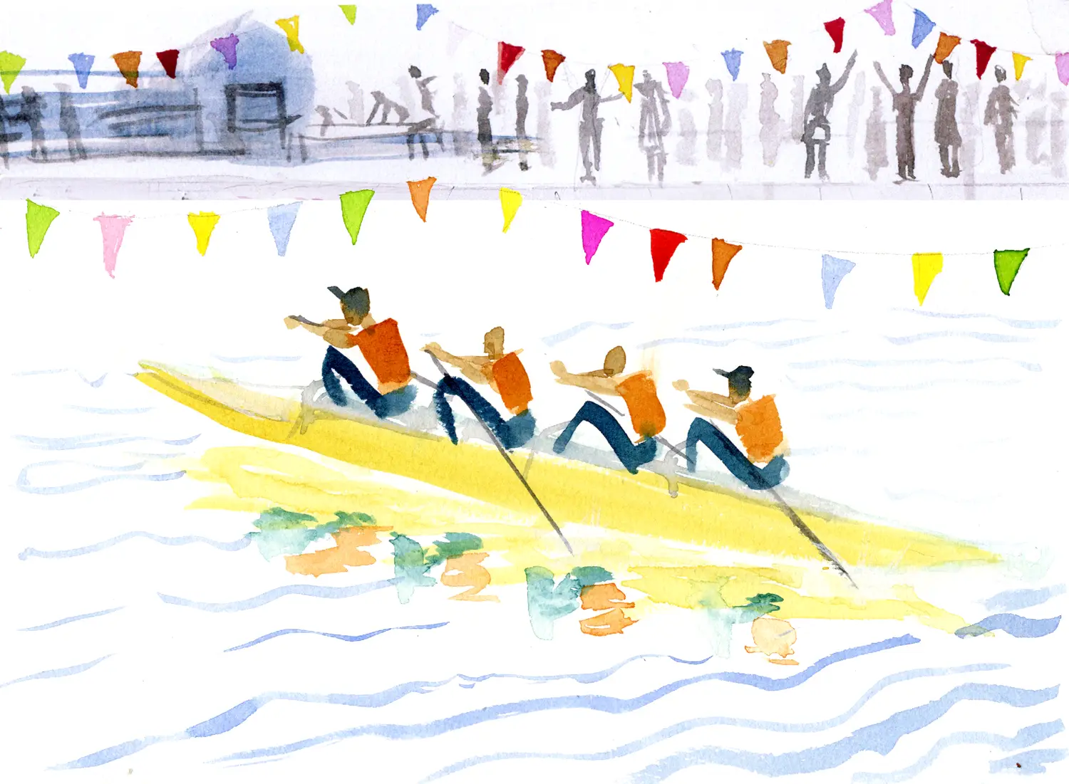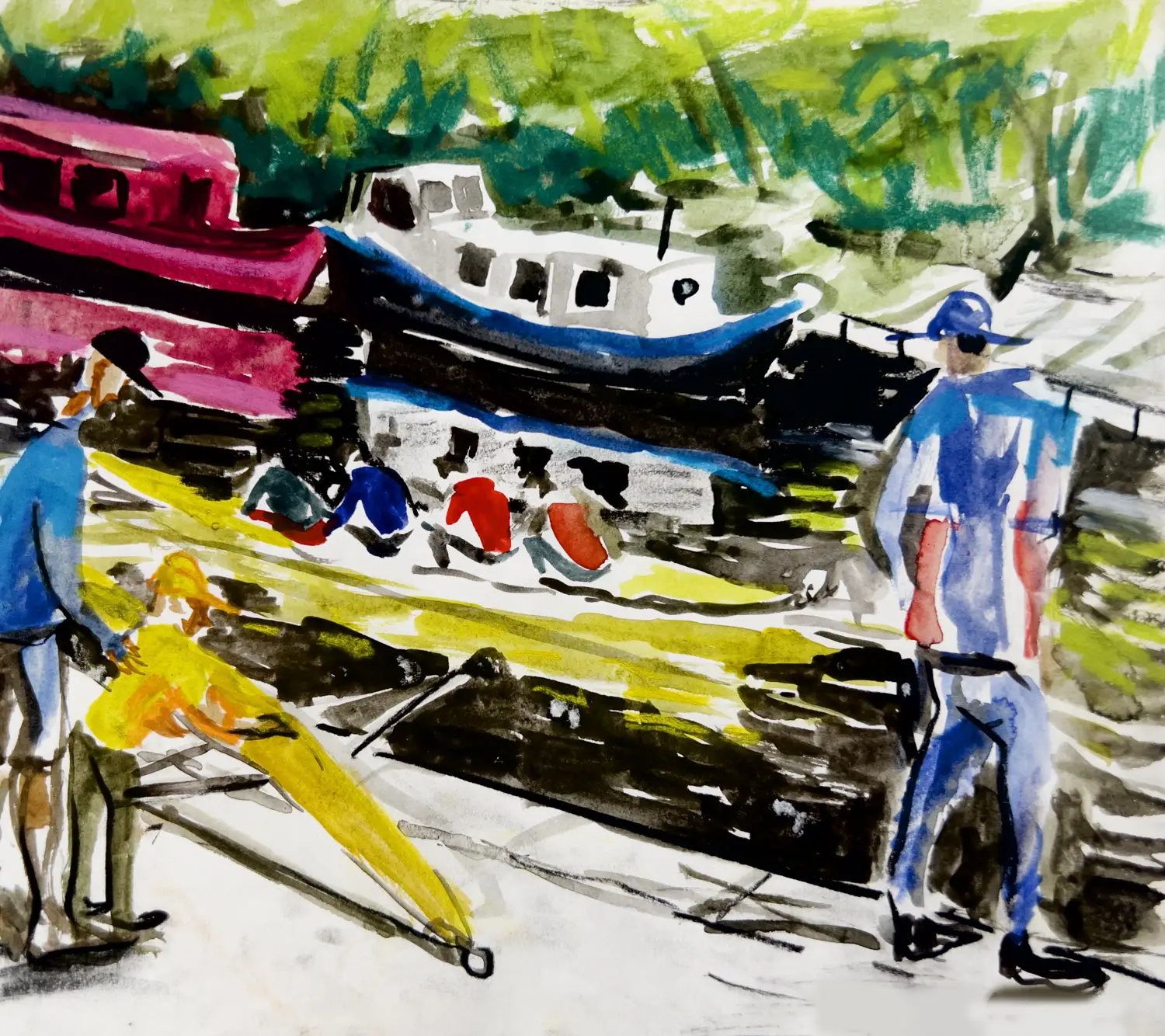 Getting ready for the annual regatta Acrylic and charcoal on canvas 76cm x 50cm